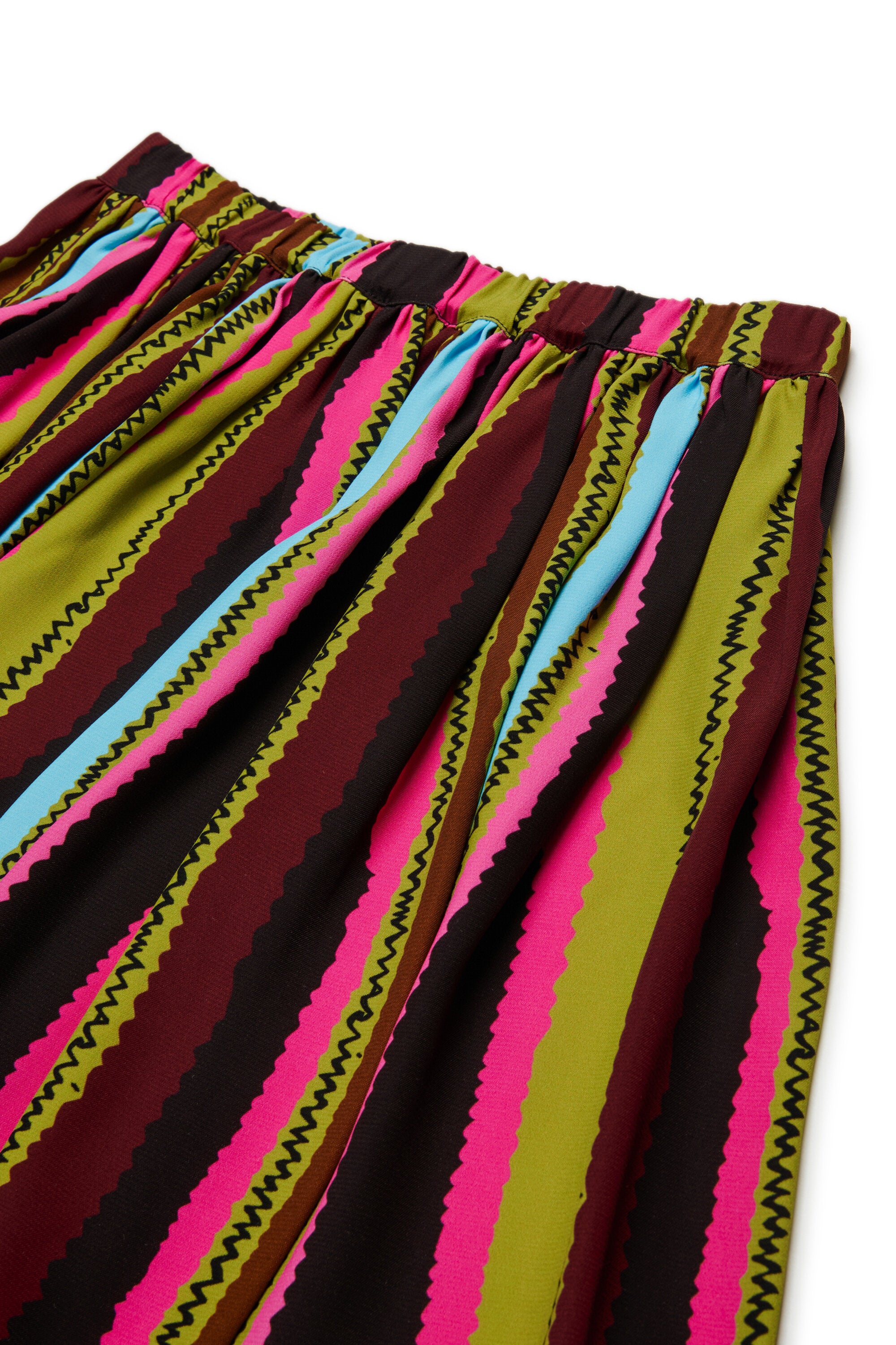 Gonna corta in raso satin allover Rock Doll, una fantasia arricchita da righe verticali irregolari con logo Marni inserito nella grafica. Un capo particolare adatto ad ogni occasione.