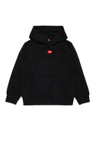 Felpa con cappuccio e patch D rossa