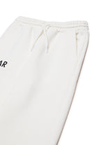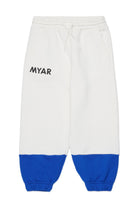 Pantaloni in felpa con banda a contrasto a livello del polpaccio, elastico in vita e al fondo.