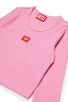 T-shirt a manica lunga in jersey stretch a costine dal fit aderente ma confortevole. Il design essenziale è impreziosito da una patch D rossa a contrasto colore sul petto che aggiunge un tocco distintivo. Un capo versatile e facile da abbinare.