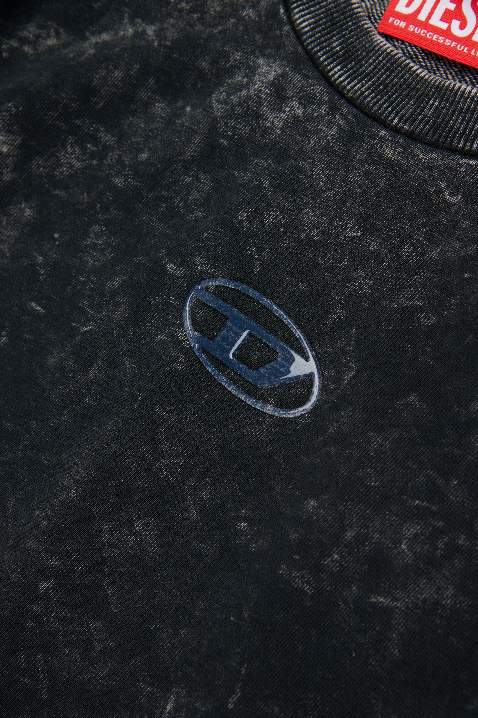 Felpa girocollo manica lunga caratterizzata da un effetto marmorizzato sfumato con cuciture overlock a contrasto colore. Perfetta per un look essenziale ma ricercato.