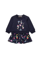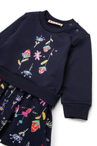Abito midi impreziosito da un mix di tessuti e dalla coloratissima grafica Nutcracker, ripresa sia nella parte superiore in felpa e sia sul fondo in jersey in versione allover. Perfetto per un look originale e pieno di personalità.