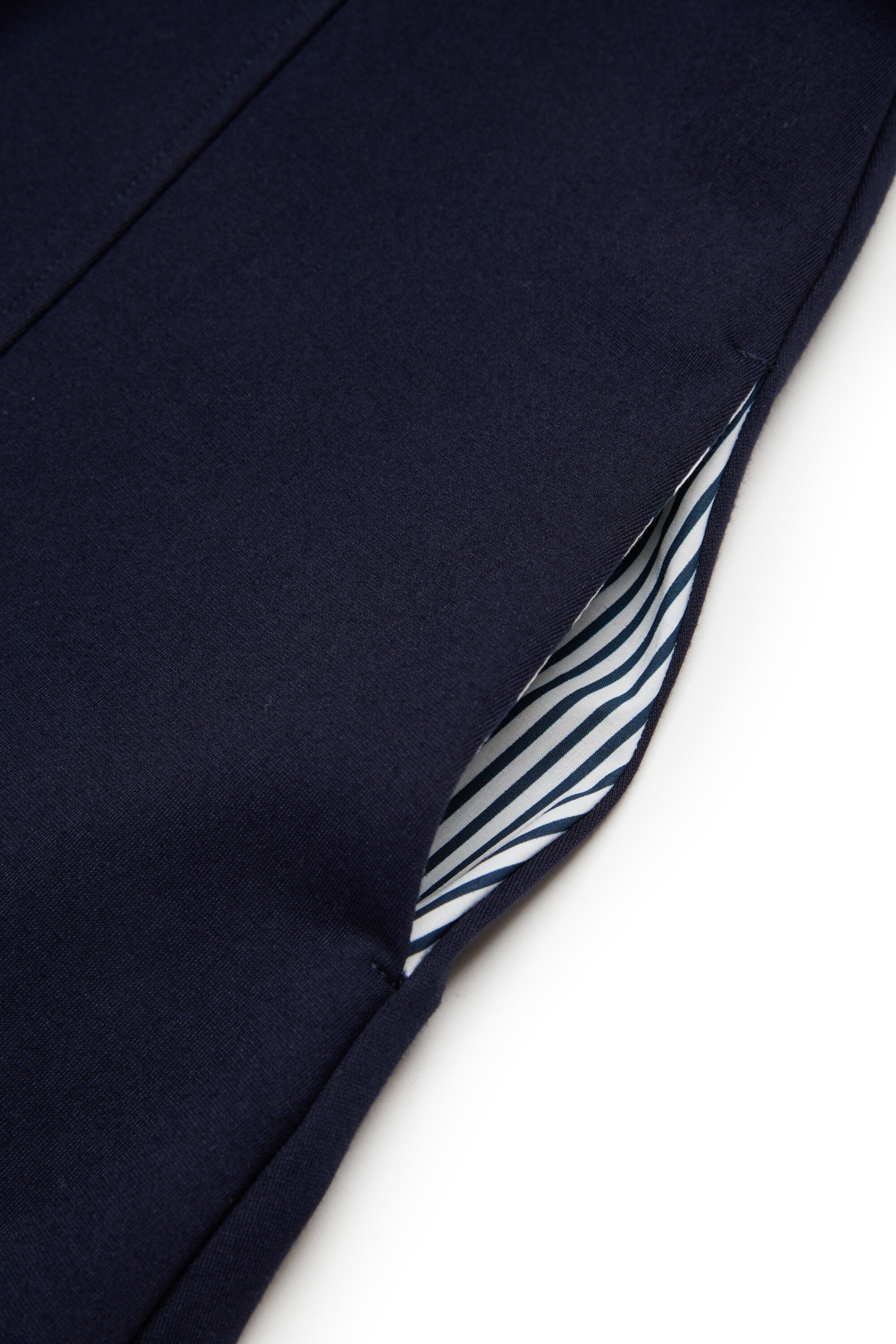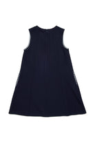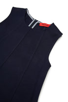 Abito corto con logo. Modello smanicato dalla linea svasata, impreziosito da dettagli interni a righe a contrasto.