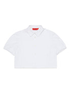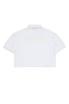 Camicia cropped con logo. Un capo dalla linea moderna arricchito da maniche corte ampie e dettagli sartoriali.