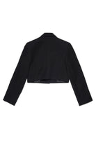 Giacca blazer cropped in fresco di lana. Un modello boxy monopetto con chiusura a due bottoni nascosti che ne esalta il design. Perfetta per le occasioni più speciali.