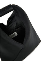 Borsa Japanese Bag in mesh Small. Caratterizzata da una silhouette triangolare e dalla presenza di bottoni ai bordi che consentono di cambiare forma alla borsa piegandola in modi diversi, un chiaro richiamo al codice estetico della Maison francese. Il manico presenta una parte in pelle con logo numerico. É l’accessorio più emblematico di MM6, ripreso dalla collezione adulto.