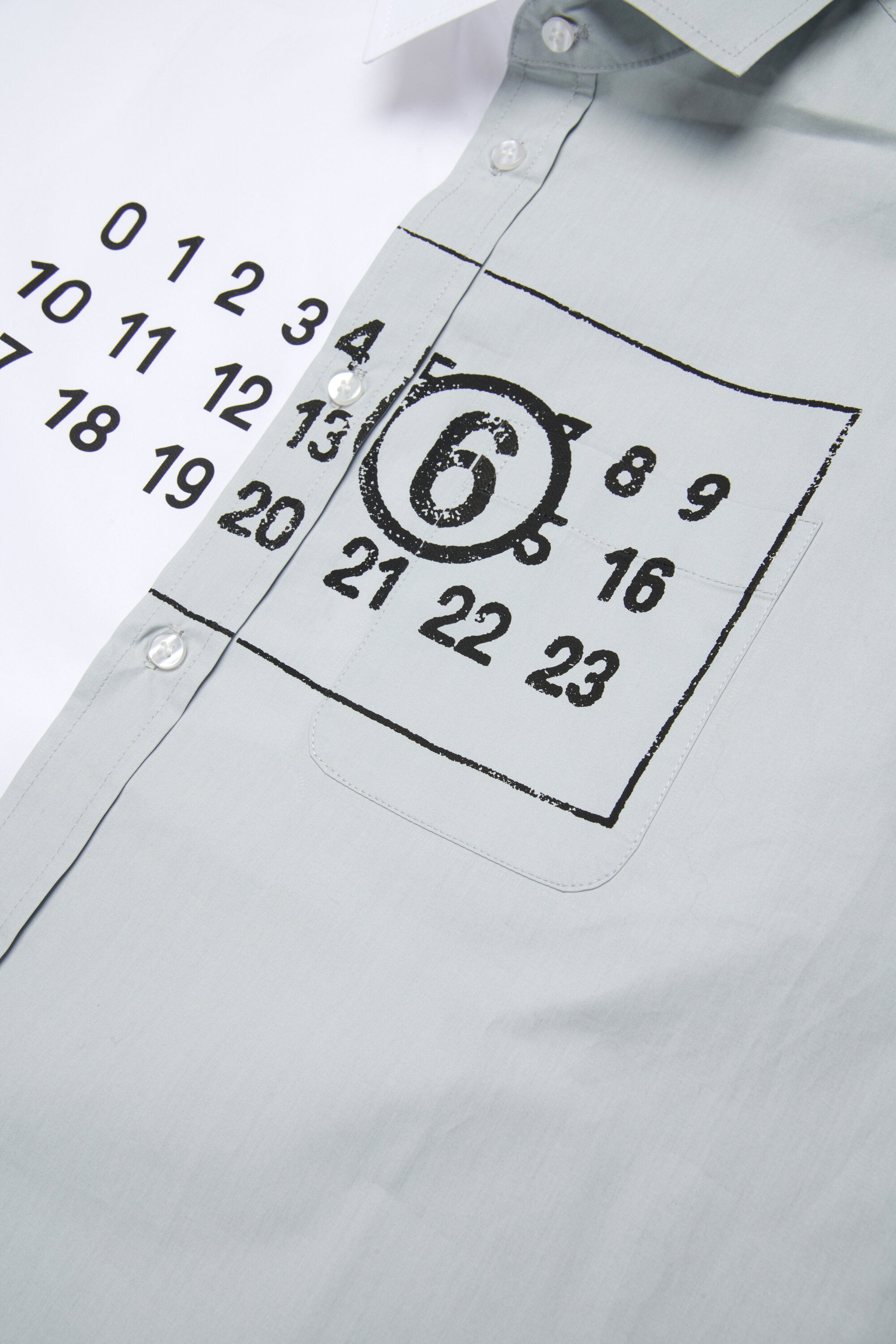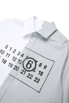 Camicia asimmetrica in popeline bicolor dallo stile distintivo re-cut MM6. Un design che simula l'assemblaggio di due capi destrutturati e riassemblati, accentuato dai dettagli a taglio vivo per un look deciso e moderno.