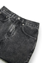 Minigonna in denim grigio con sfumature a contrasto e orlo a taglio vivo sul fondo. Un capo perfetto per un look moderno e grintoso.
