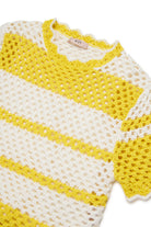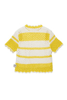 Pullover in maglia traforata, caratterizzato da lavorazione crochet e profili ondulati.