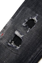 - Denim nero con abrasioni, strappi e schizzi effetto vernice