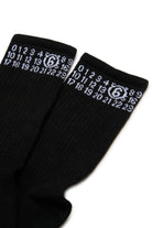 Calzini in misto cotone a costine. Presentano un numeric logo a contrasto colore nella parte superiore. Made in Italy.