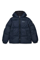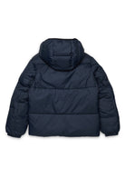 Giacca imbottita con cappucio e logo che combina protezione termica e design pulito, pensata per affrontare le giornate fredde con praticità. Il logo applicato sulla manica aggiunge un dettaglio distintivo.