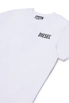 T-shirt dal taglio pulito e contemporaneo, pensata per chi cerca un capo versatile e distintivo. Il logo Diesel sul petto valorizza il design minimalista, mentre la stampa verticale sul retro aggiunge un tocco grafico audace e riconoscibile.