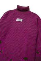 Abito mini collo alto in lana a coste bicolor, morbido e caldo. Le rotture rammendate donano un effetto vissuto autentico, perfetto per chi cerca un look ricercato e di carattere, che non passa inosservato.