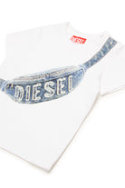 T-shirt girocollo a maniche corte in jersey. Presenta una stampa Diesel Hip Pack trompe l'oeil sul davanti. Pratica chiusura con bottoncini sulla spalla. Realizzata in 100% cotone.