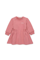 Abito midi in felpa con balze sui fianchi, che donano movimento e un delicato effetto arricciato ai lati. Un capo dal design contemporaneo, arricchito dal logo stampato lato cuore.