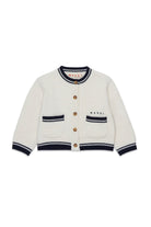 Cardigan a manica lunga in maglia misto lana, impreziosito da taschini anteriori e dettagli a contrasto su girocollo, polsini e fondo, che ne esaltano il design. Un capo raffinato e versatile.