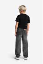 Jeans D-Maki relaxed fit in denim grigio scuro con strappi dall'attitude street. Un modello dalla silhouette oversize comoda dalla vita alle caviglie, morbido sulla gamba. Ispirato agli anni '90, il jeans più ampio della collezione Diesel.