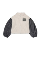 Giacca bomber in teddy con maniche a contrasto colore. Un look deciso e contemporaneo, perfetto per chi cerca un capo pratico ma di carattere.