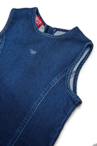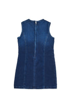 Abito smanicato in JoggJeans® blu scuro, un modello essenziale ma ricco di dettagli distintivi. Il lavaggio con sfumature a contrasto cromatico dona un accento moderno, perfetto per varie occasioni.