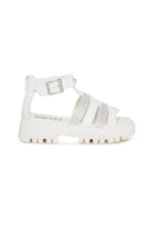Sandali con logo e tomaia multilistini dalle linee robusta e moderna. Caratterizzati dal dettaglio di strass sui cinturini che li rendono una calzatura riconoscibile.