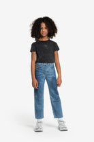 Jeans D-Air regular fit in denim blu con grafica laser e hotfix dall'attitude essential. Un modello dal taglio dritto e gamba tapered più morbida sulla coscia che si restringe gradualmente verso la caviglia. L'applicazione manuale delle microstones impreziosisce questo jeans donandogli un tocco di luce dal fascino unico.