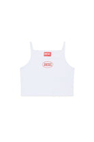 Top smanicato in 100% cotone con logo frontale. Un capo dallo stile essenziale e dal design pulito.