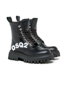 Stivali anfibi in pelle con logo DSQ2 ricamato a contrasto colore sul lato. Un mix di robustezza e stile perfetto per esprimere la propria personalità ad ogni passo.