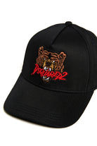 Cappello da baseball in gabardina con patch Bear sul davanti. Un richiamo ironico al mondo horror e riferimenti alle selvagge foreste canadesi: un dettaglio che non passa inosservato.