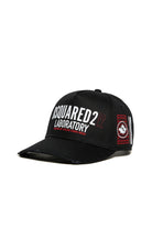 Cappello da baseball in gabardina con logo Laboratory gommato sul davanti e un originale grafica laterale, in cui è integrata la Maple Leaf canadese, simbolo iconico dell'universo Dsquared2. Un accessorio ricco di personalità e stile.