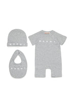Set neonato in 100% cotone con logo. Un kit composto da body, bavaglino e berretto, pensato per offrire praticità e stile con dettagli grafici sul fronte.