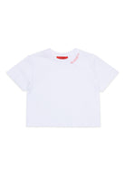 T-shirt in 100% cotone con logo stampato sulla spalla. Il design presenta una silhouette cropped e maniche corte per uno stile attuale e informale.