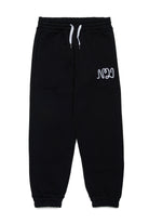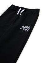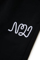 Pantaloni jogger in felpa con logo N°21 corsivo ricamato in cordoncino sul davanti. Comodi e versatili, uniscono lo stile sportivo a piccoli dettagli che li rendono subito riconoscibili.