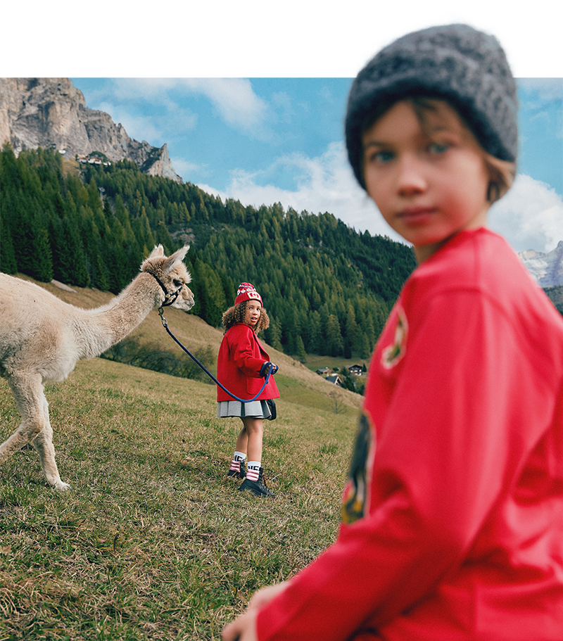 Nella nostra Merry Farm, i bambini riscoprono il piacere di correre liberi, ridere insieme e accarezzare alpaca e asinelli, vestiti con look caldi, naturali e pieni di personalità.
