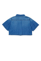 Camicia cropped in denim con logo ricamato sul colletto e tasca applicata sul petto.