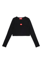 T-shirt a manica lunga in jersey stretch a costine dal fit aderente ma confortevole. Il design essenziale è impreziosito da una patch D rossa a contrasto colore sul petto che aggiunge un tocco distintivo. Un capo versatile e facile da abbinare.