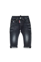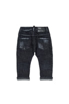 Jeans a cinque tasche. Realizzato in denim nero, contraddistinto da sfumature e baffature a contrasto cromatico. Fondo risvoltato effetto inside-out. Label Dsquared2 applicata sulla patta (logo a bandierina).