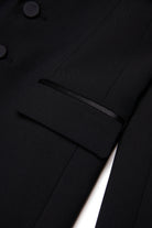 Giacca blazer in fresco di lana stretch a maniche lunghe. Vestibilità slim. Revers in tono lucidi. Chiusura frontale con bottoni. Tasche a pattina anteriori. Fodera interna in tono. Un capo perfetto per cerimonie e occasioni speciali.