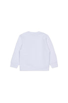 Felpa girocollo a maniche lunghe. Logo Dsquared2 a contrasto colore sul davanti. Pratica chiusura con bottoncini sulla spalla. Lavorazione a costine su girocollo, polsini e fondo. Realizzata in 100% cotone.