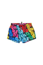 Costume boxer con logo e stampa allover multicolore. Il modello presenta un design vivace e moderno.
