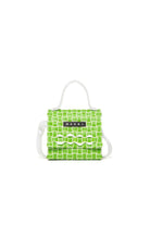 Borsa Joy Micro con chiusura a calamita. L'articolo presenta un corpo intrecciato con motivo geometrico su cui è applicato il logo Marni istituzionale. Manico in gomma. Portabile a mano e cross body. Tracolla (fissa) regolabile in nastro. Misure: 13 cm di altezza, 14 cm di larghezza, 8 cm di profondità. Luce manico: 46 cm.