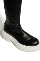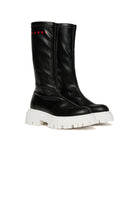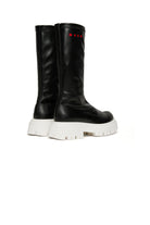 Stivali alti dal design moderno. Presentano un logo istituzionale a contrasto colore sui lati. Cucitura overlock nella parte alta. Fodera in misto pelle. Suola track in termoplastica a contrasto colore. Un modello dallo stile ricercato, adatto alle occasioni meno formali. Realizzato in Italia.