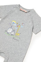 Tuta da neonato con logo e stampa con animali frontale, perfetta per i primi mesi.