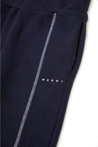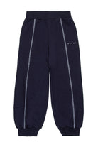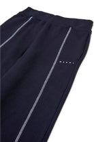 Pantaloni jogger in felpa. Elastici in vita ed elastici alla caviglia. Logo istituzionale sul davanti. Cuciture overlock frontali a contrasto colore. Tasche a filetto anteriori. Realizzati in 100% cotone.