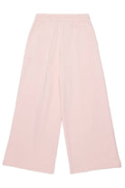 Pantaloni wide leg in felpa. Coulisse in vita. Logo istituzionale a contrasto colore sulla gamba. Tasche all'americana anteriori. Realizzati in 100% cotone.