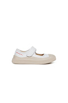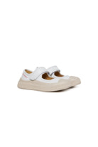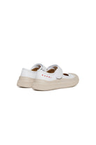 Sneakers basse Mary Jane con cinturino a strap nella parte superiore. Logo istituzionale stampato a contrasto colore sul lato posteriore. Tomaia e fodera interna in pelle di vitello. Suola in gomma termoplastica. Made in Italy.