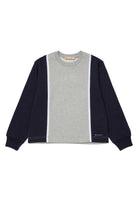 Felpa girocollo a maniche lunghe con dettagli colorblock e piping a contrasto. Logo istituzionale sul fondo. Lavorazione a costine su girocollo e polsini. Realizzata in 100% cotone.