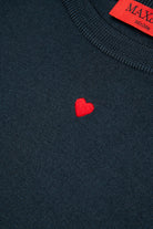 Pullover girocollo con maniche raglan. Realizzato in 100% pura lana. Vestibilità regular. Ricamo cuore a contrasto colore sul davanti. Lavorazione a coste su fondo, polsini e girocollo. Un capo perfetto da indossare ogni giorno senza rinunciare mai allo stile.