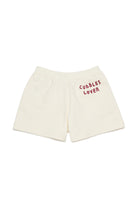 Shorts in felpa con logo stampato e scritta applicata sul retro. Il modello presenta una linea essenziale con vita elasticizzata e tasche laterali.