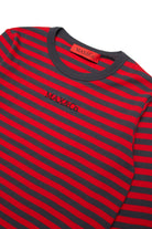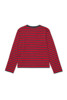 T-shirt manica lunga in microcostina a righe, realizzata in cotone tinto filo. Un mix di colori che esalta e valorizza il logo effetto gommato stampato sul davanti.